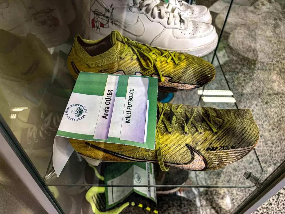 Bolu’da 250’nin üzerinde ünlünün ayakkabısının sergilendiği müzede, İspanyol devi Real Madrid’de forma giyen ulusal futbolcu Arda Güler’in ferdi idmanlarında kullandığı ve top oynamaktan yırtılan kramponları da sergilenmeye başlandı.