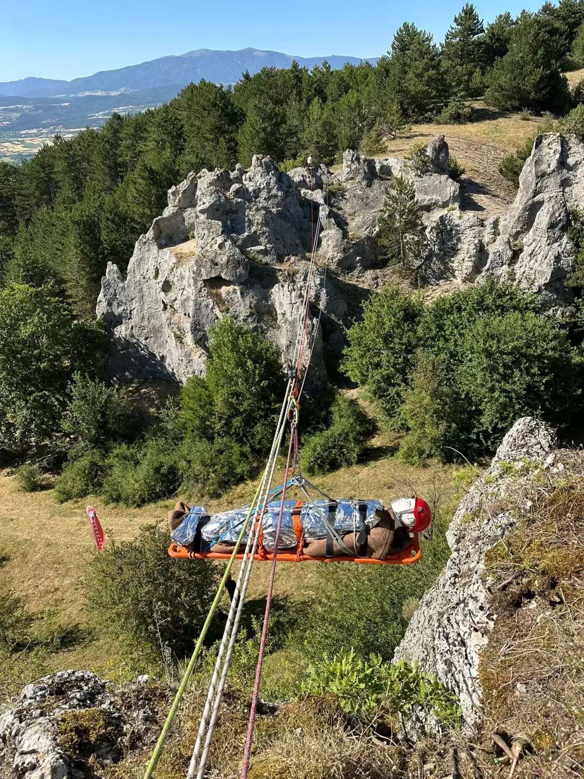 Eğitimler sırasında düzenlenen tatbikatta takımlar, senaryo gereği kayalıklarda yaralanarak mahsur kalanları kurtarma için çalışma yaptı. Takımlar kuvvetli şartlarda kayalıkların ortasına çektikleri metrelerce halatlara bağladıkları yaralıları kurtardı.