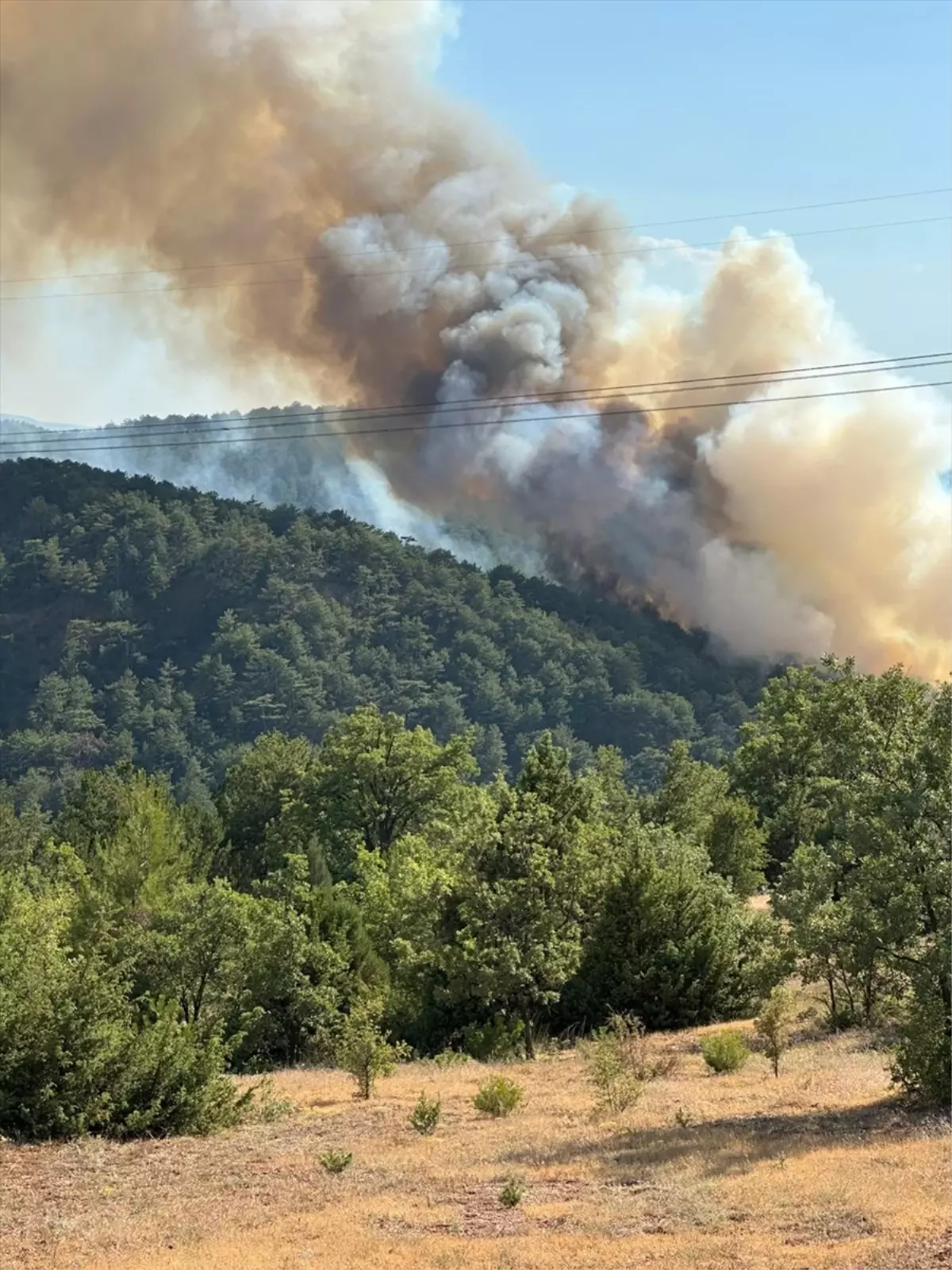 İlçeye bağlı Karaardıç köyü yakınlarındaki ormanlık alanda şimdi bilinmeyen nedenle yangın çıktı.
