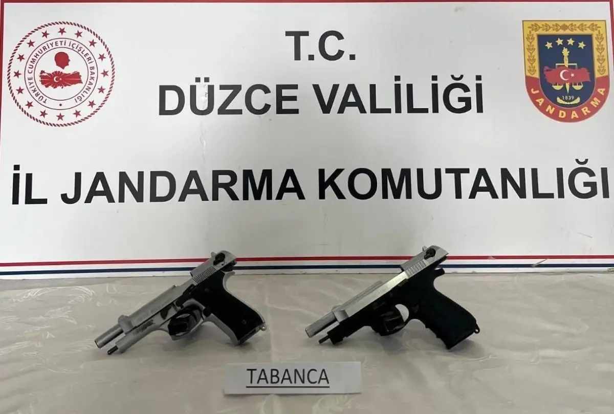 DÜZCE(İHA) – Düzce’nin çiftlik köyünde düğünde havaya ateş 4 kişi jandarma takımları tarafından tespit edilirken 2 adet kuru sıkı tabanca ele geçirildi.