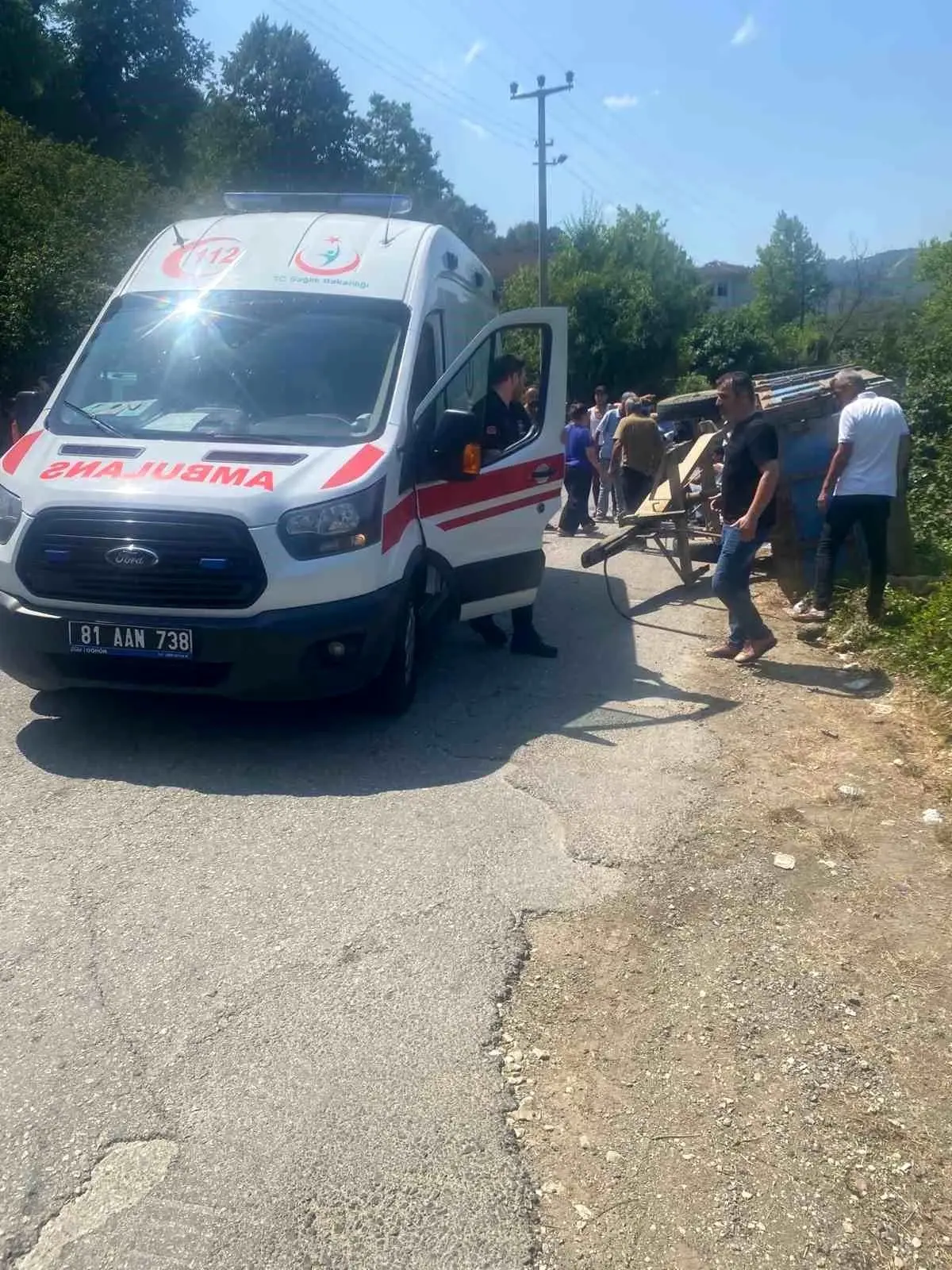 Düzce’de fındık emekçilerini taşıyan traktörün devrilmesi sonucu meydana gelen trafik kazasında 8 kişi yaralandı.