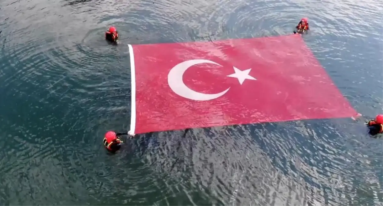 Jandarma Teşkilatı’nın 186’ncı kuruluş yıl dönümü kutlamaları kapsamında Bolu Vilayet Jandarma Komutanlığı’na bağlı JAK timi, Gölcük Tabiat Parkı’nda göle girerek suyun ortasında dev Türk bayrağı açtı.