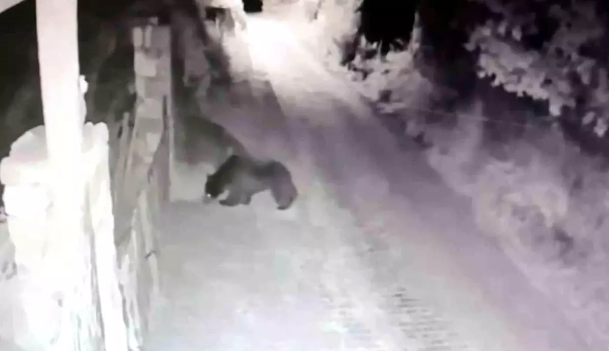 Olay, gece yarısı saatlerinde merkeze bağlı Bulak köyünde meydana geldi. Ormandan gelen ayı, çevreyi koklayarak bir bağ konutunun bahçe kapısının önüne geldi. Kapıyı tutup açan ayı, bir anda korkup geldiği istikamete gerçek koşarak uzaklaştı. Meskenin sahibi sabah geldiğinde bahçe kapısının neden açık olduğunu ise güvenlik kamerasını izleyince anladı.