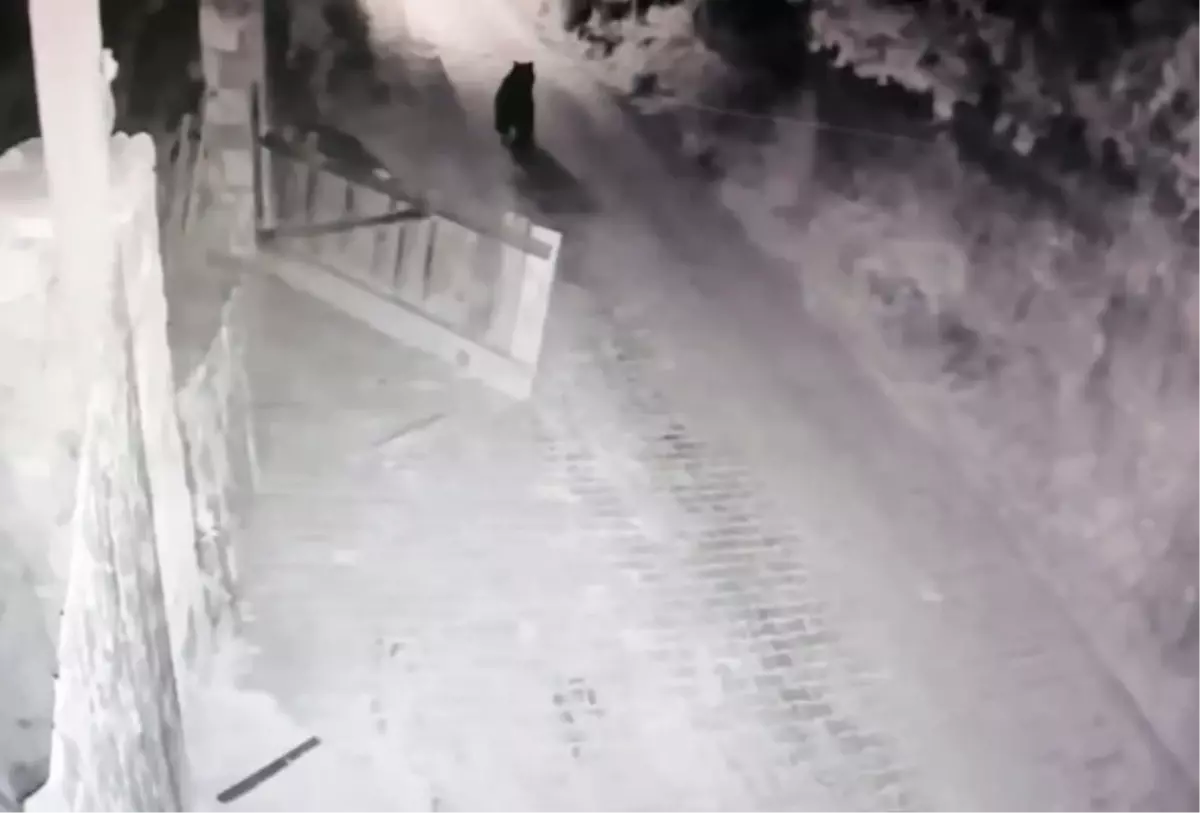 KARABÜK’te köye inen boz ayının sokakta yürüyerek bahçenin kapısını açtığı anlar, güvenlik kamerasına yansıdı.