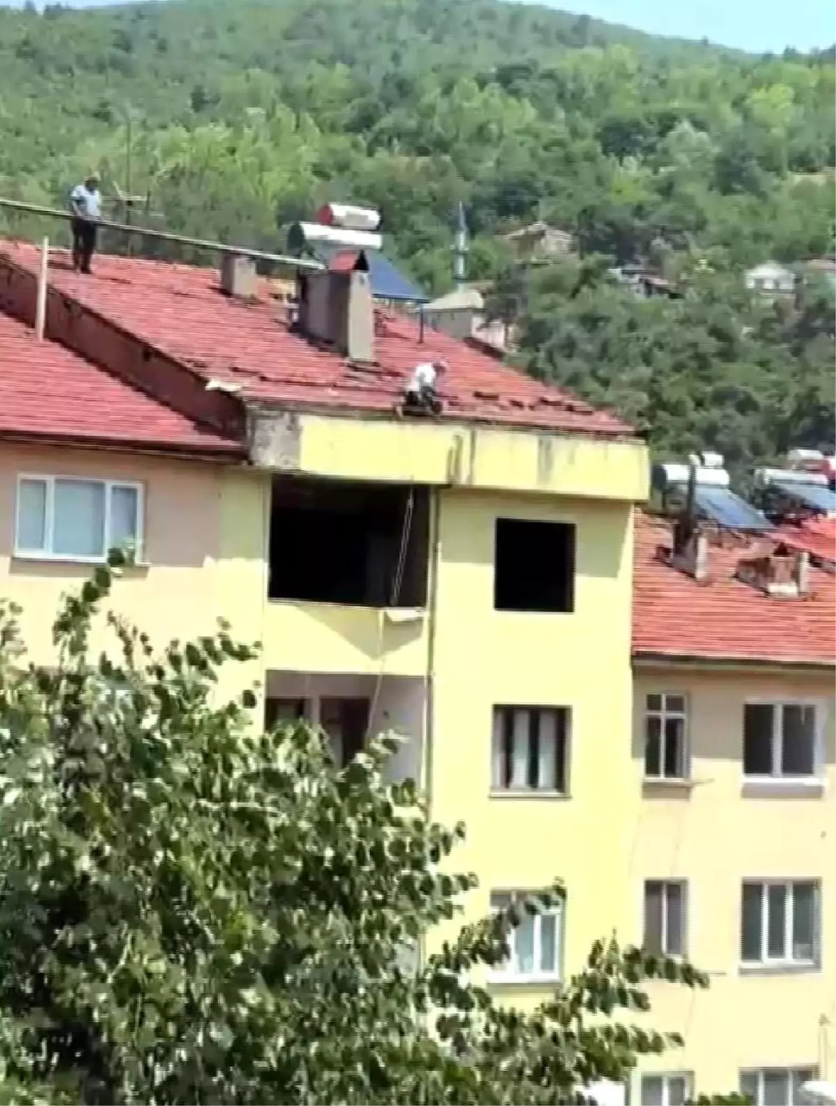 Karabük’ün Yenice ilçesinde 5 katlı bir binanın çatısında güvenlik tedbiri almadan çalışan emekçiler yürekleri ağza getirdi. Tehlikeye aldırış etmeyen çalışanların o anları cep telefonuyla kaydedildi.