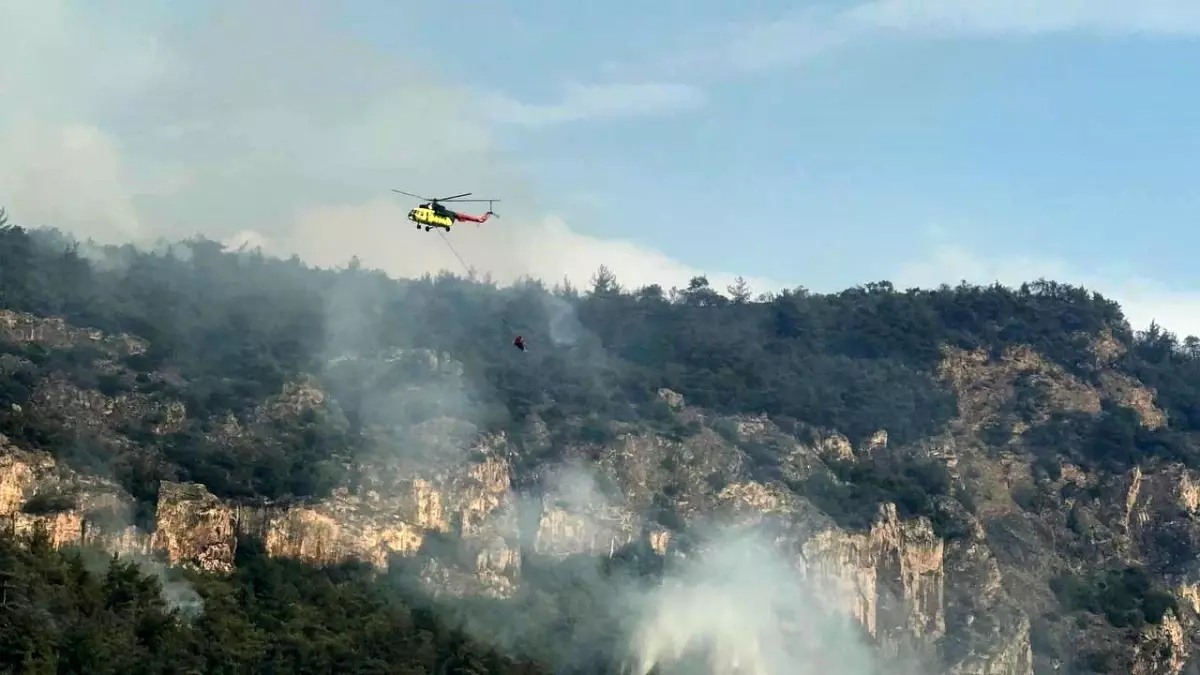 Orman Genel Müdürlüğü koordinesindeki gruplar, helikopterler, arazözler ve iş makineleriyle yangının gücünü düşürdü.