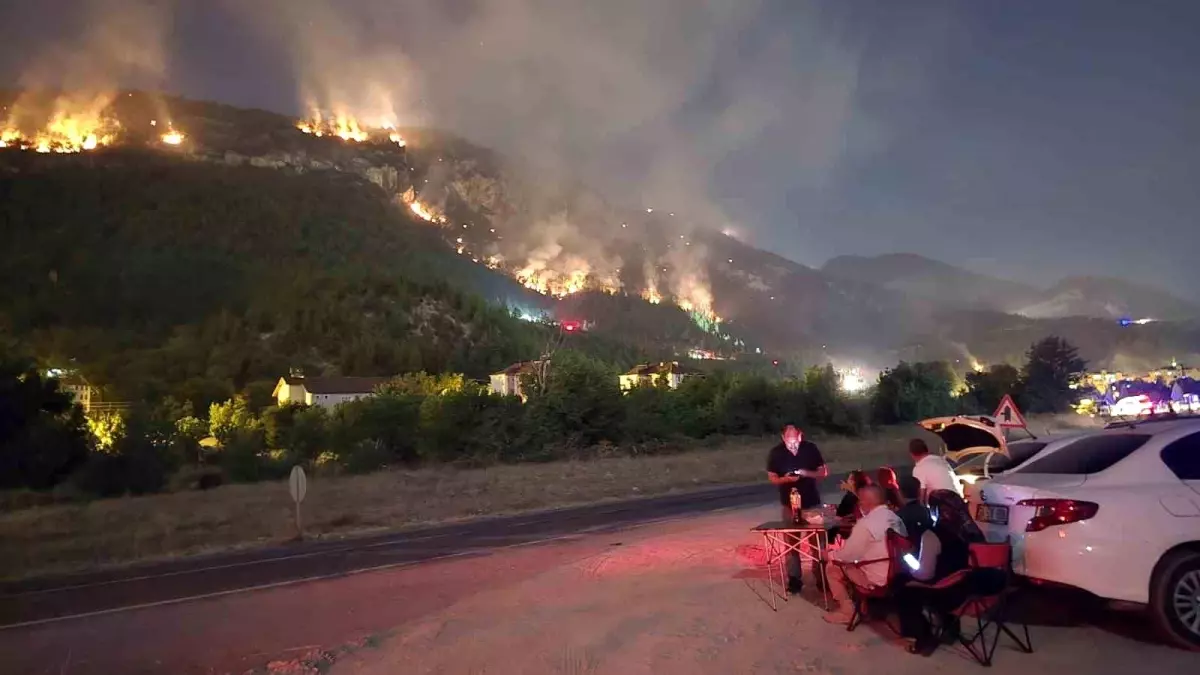 Karabük’teki Orman Yangınına Müdahale Sürüyor, Vatandaşlar Yangını İzliyor