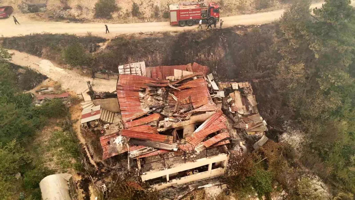 Yangının verdiği tahribat dron ile havadan görüntülendi.