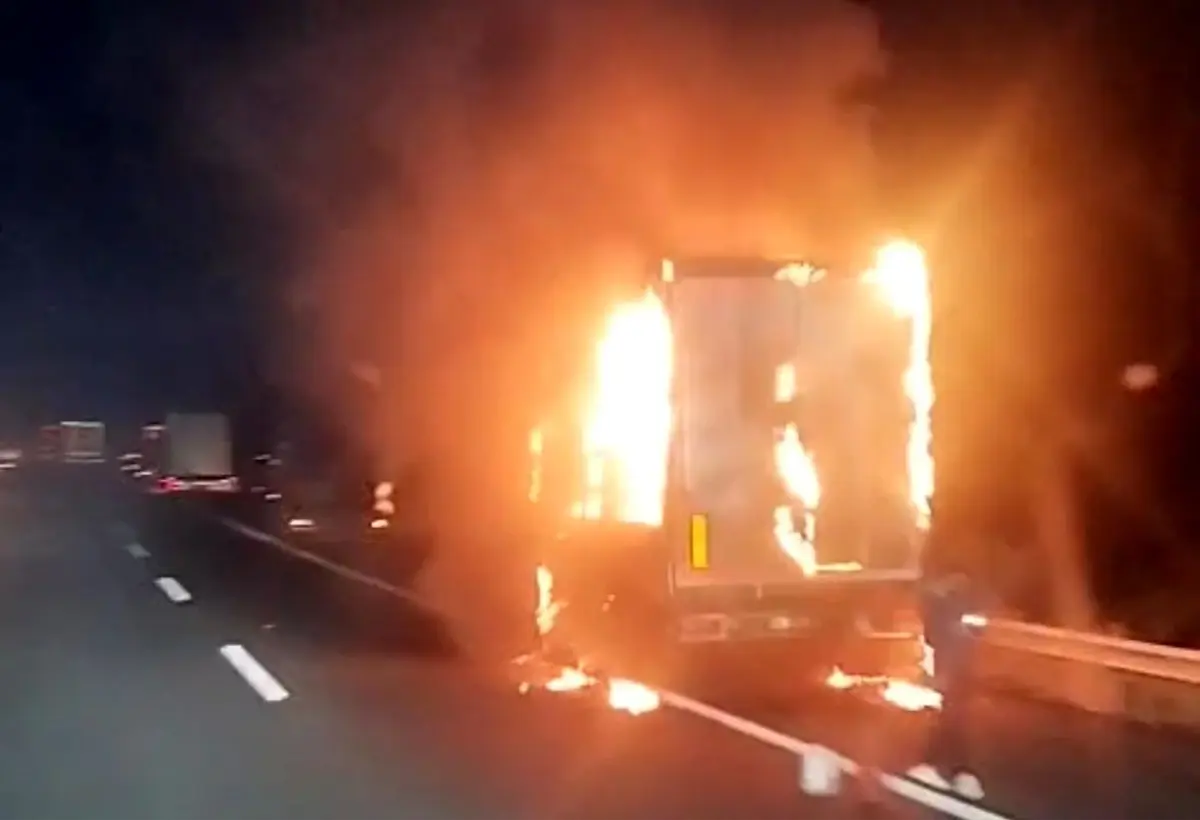 TEM Otoyolu’nda Kargo Yüklü Tırda Yangın Çıktı